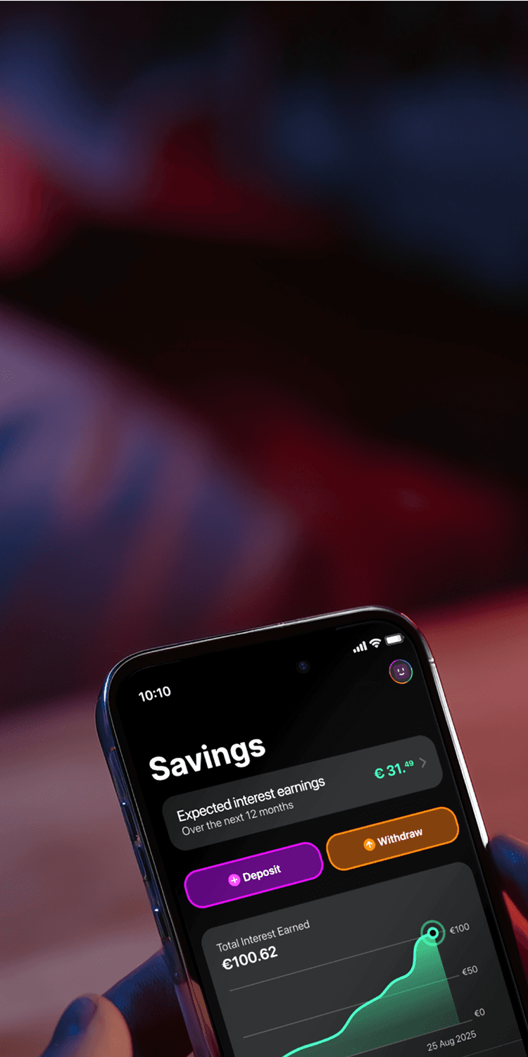 Every time you make a payment, AutoSave rounds up your purchase and saves the difference. Spend €2.20 on coffee? €0.80 goes straight into your Savings Account, helping you grow your money effortlessly with compound interest.