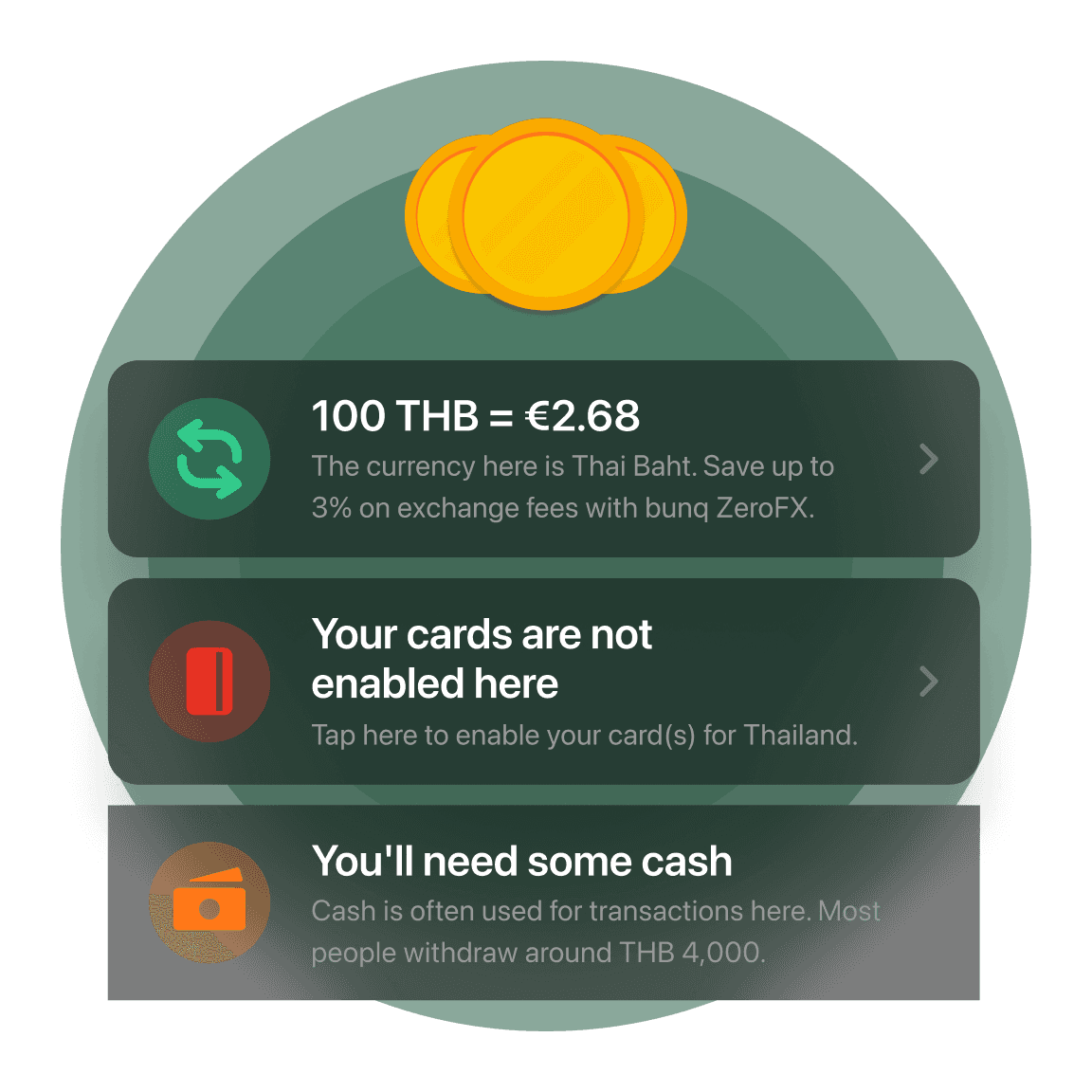 Get instant local insights right in the app. Check real-time exchange rates, tipping customs, and other travel essentials, so you can feel confident spending anywhere.